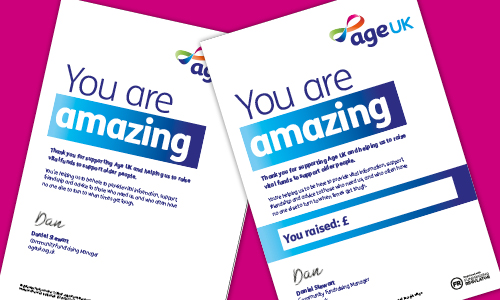 You did it - thank you! Celebrate your success with your own Age UK fundraising certificate.